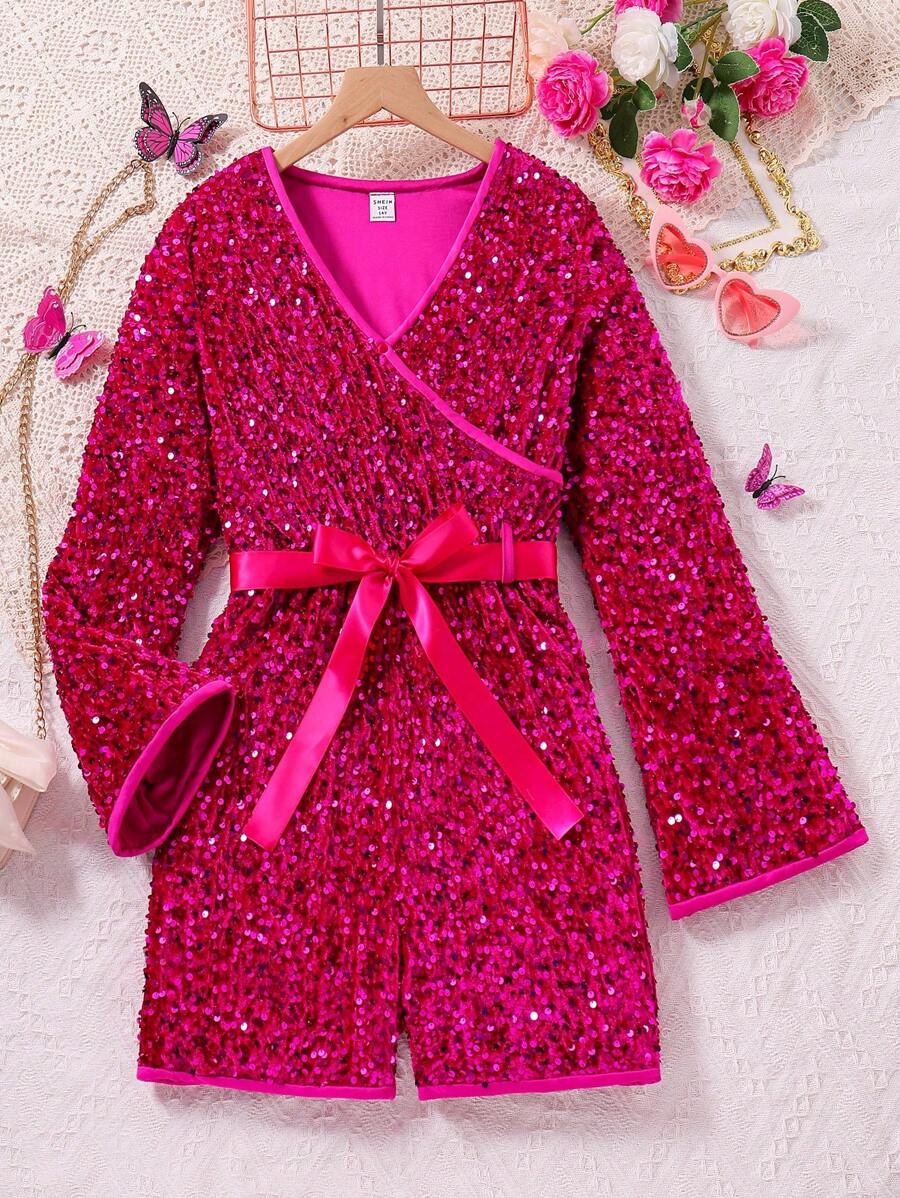 Teenagers Girls Sequined Long-Sleeved Waisted Gorgeous Party Romper