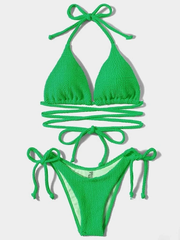 Textured Bikini Set Halter Triangle Bra Top & Tie Side Bikini Bottom 2 Piece Bathing Suit
