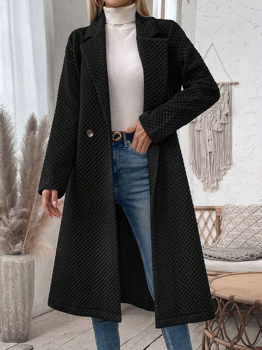 SHEIN LUNE Textured Solid Color Mid-long Coat