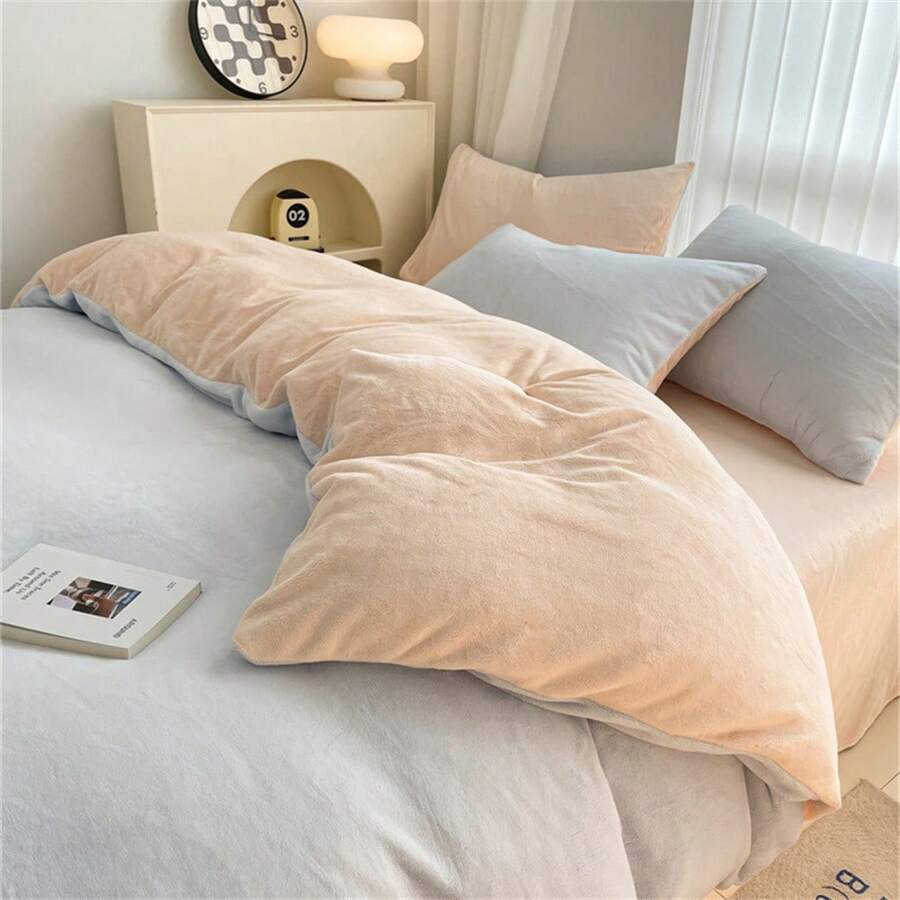 Thick And Warm Solid Color Double-sided Flannel Single Duvet Cover For Autumn & Winter