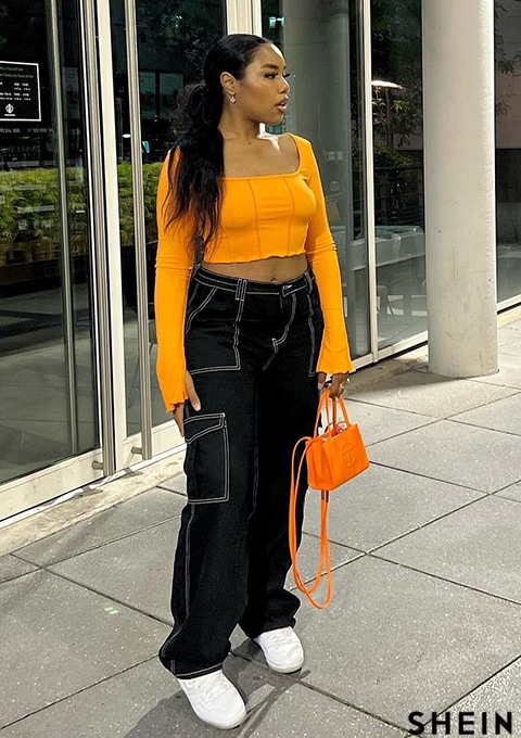 SHEIN Privé Tie Back Lettuce Trim Crop Top