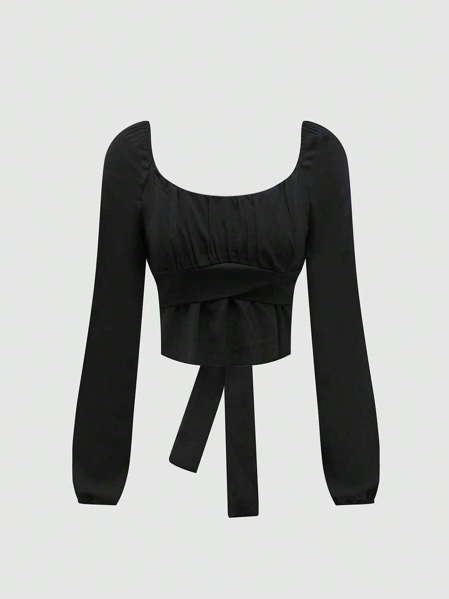 SHEIN MOD Tie Back Solid Color Crop Top