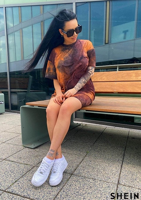 SHEIN EZwear Tie Dye Drop Shoulder Tee & Biker Shorts