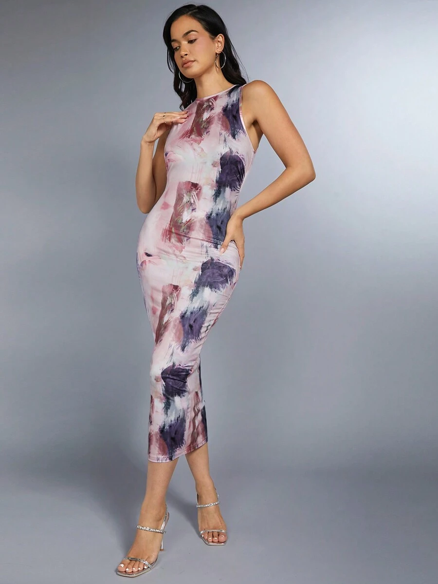 SHEIN BAE Tie-Dye Printed Bodycon Sleeveless Dress