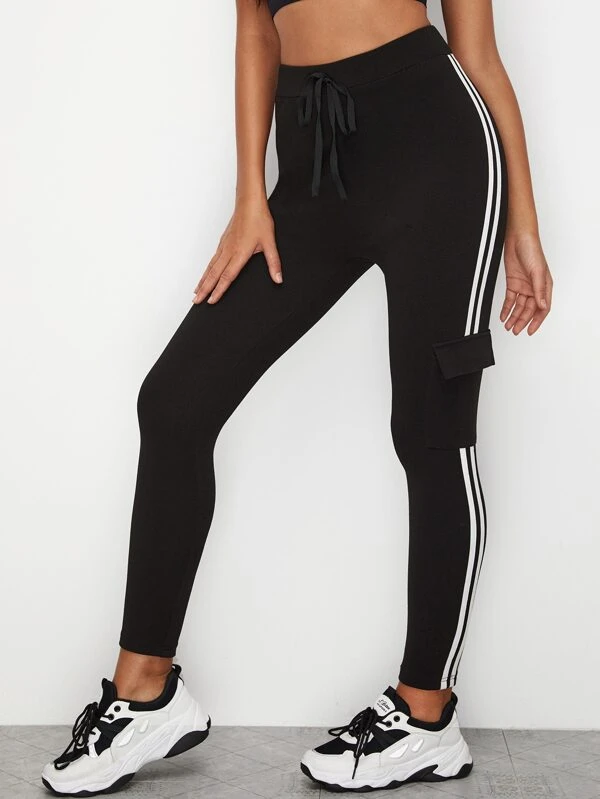 SHEIN LUNE Tie Front Flap Pocket Side Skinny Joggers