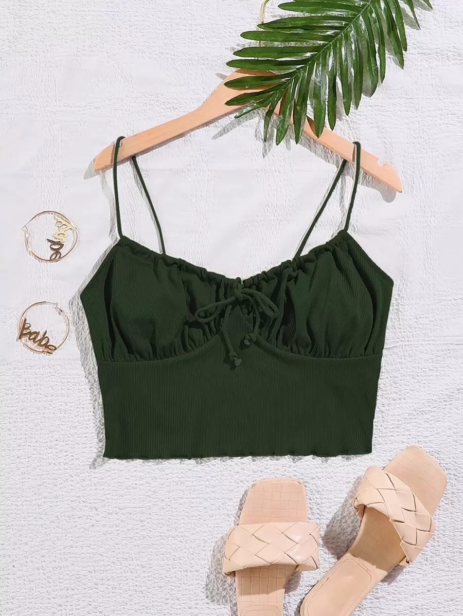 SHEIN Qutie Tie Front Ruched Bust Cami Top