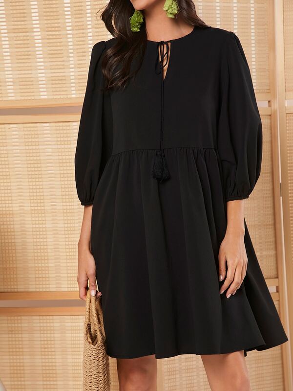 SHEIN LUNE Tie Neck Lantern Sleeve Smock Dress