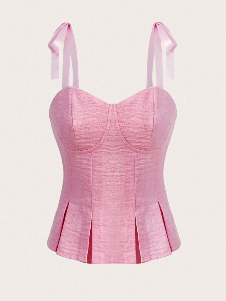 SHEIN MOD Tie Shoulder Fold Pleated Detail Bustier Cami Top