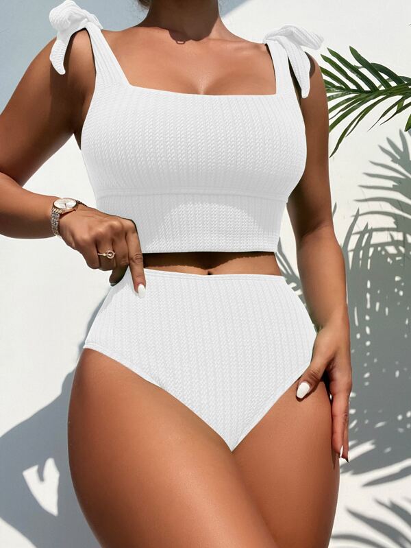 SHEIN Swim Chicsea Tie Shoulder High Waisted Bikini Swimsuit