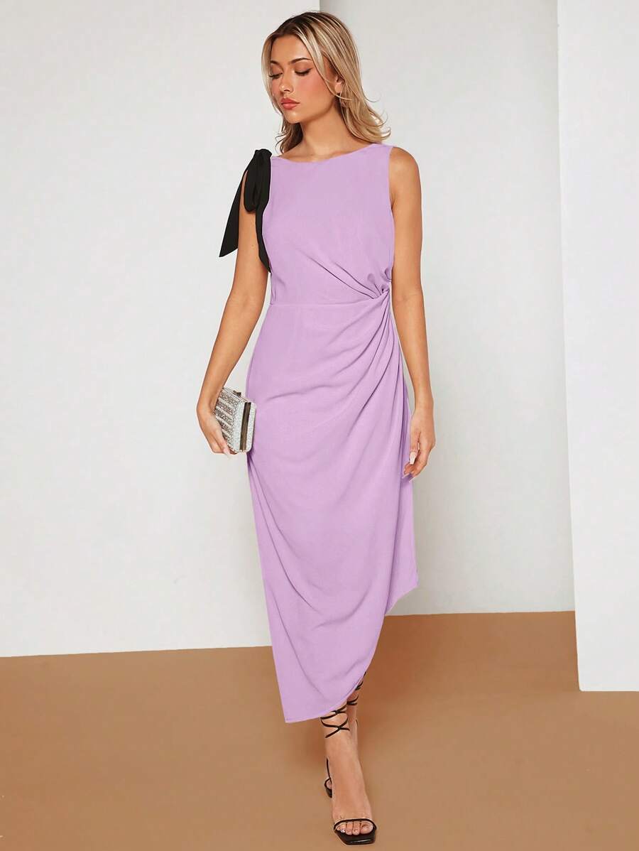SHEIN Belle Tie Shoulder Ruched Asymmetrical Hem Dress