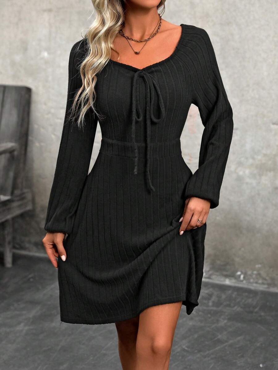 SHEIN LUNE Tied Front Lantern Sleeve Dress