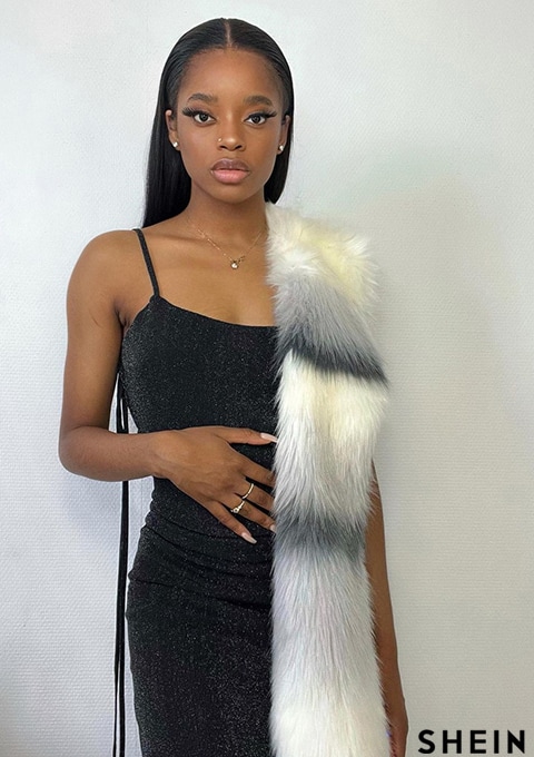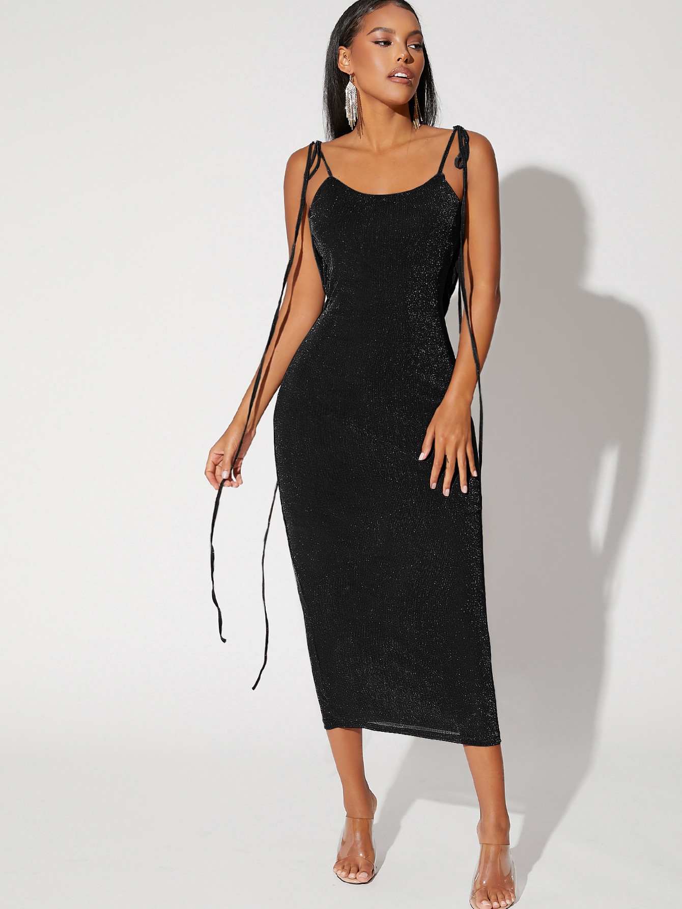 SHEIN BAE Tied Shoulder Backless Glitter Dress