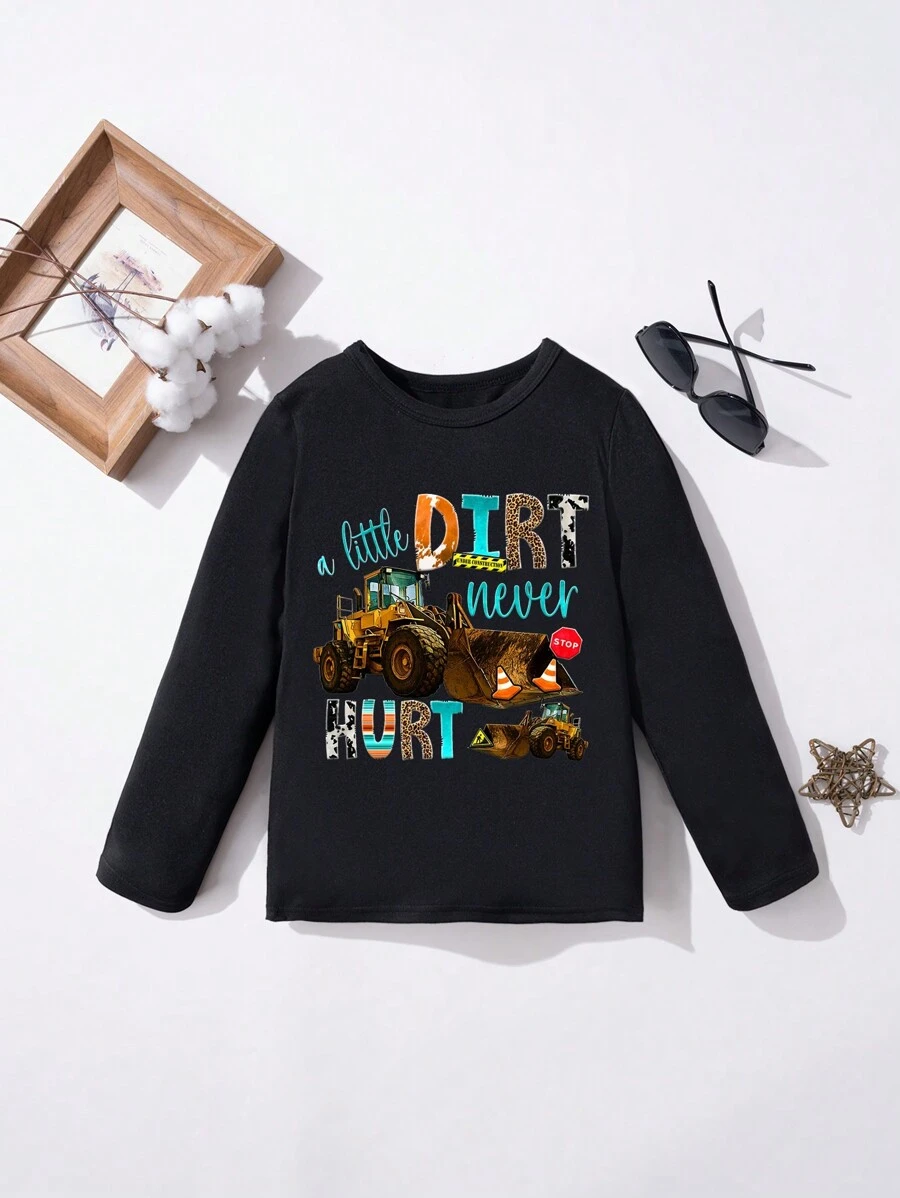 Toddler Boys' Casual Construction Vehicle & Letter Printed Long Sleeve T-Shirt