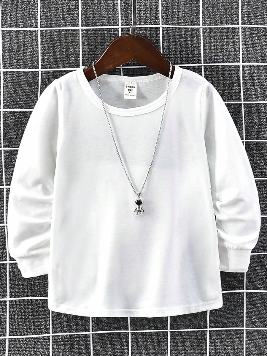 SHEIN Toddler Boys' Casual Solid Color Long Sleeve T-shirt