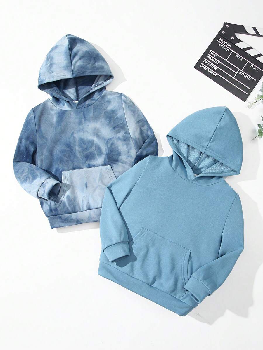 SHEIN Kids EVRYDAY Toddler Boys' Fitted Casual Hooded Pullover Sweatshirt, Multipack