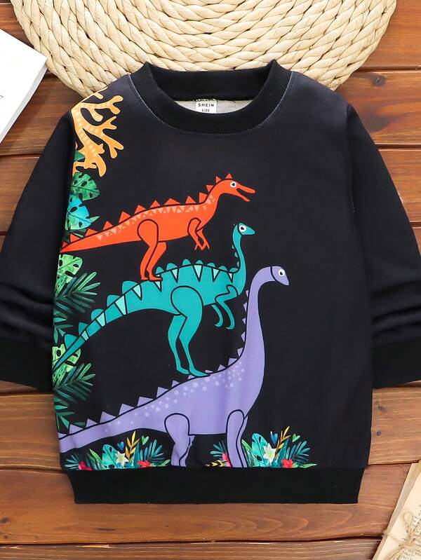 SHEIN Kids QTFun Toddler Boys' Sports Shirt With Cartoon Dinosaur Print And Round Neckline