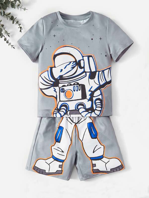 SHEIN Toddler Boys Astronaut Print PJ Set