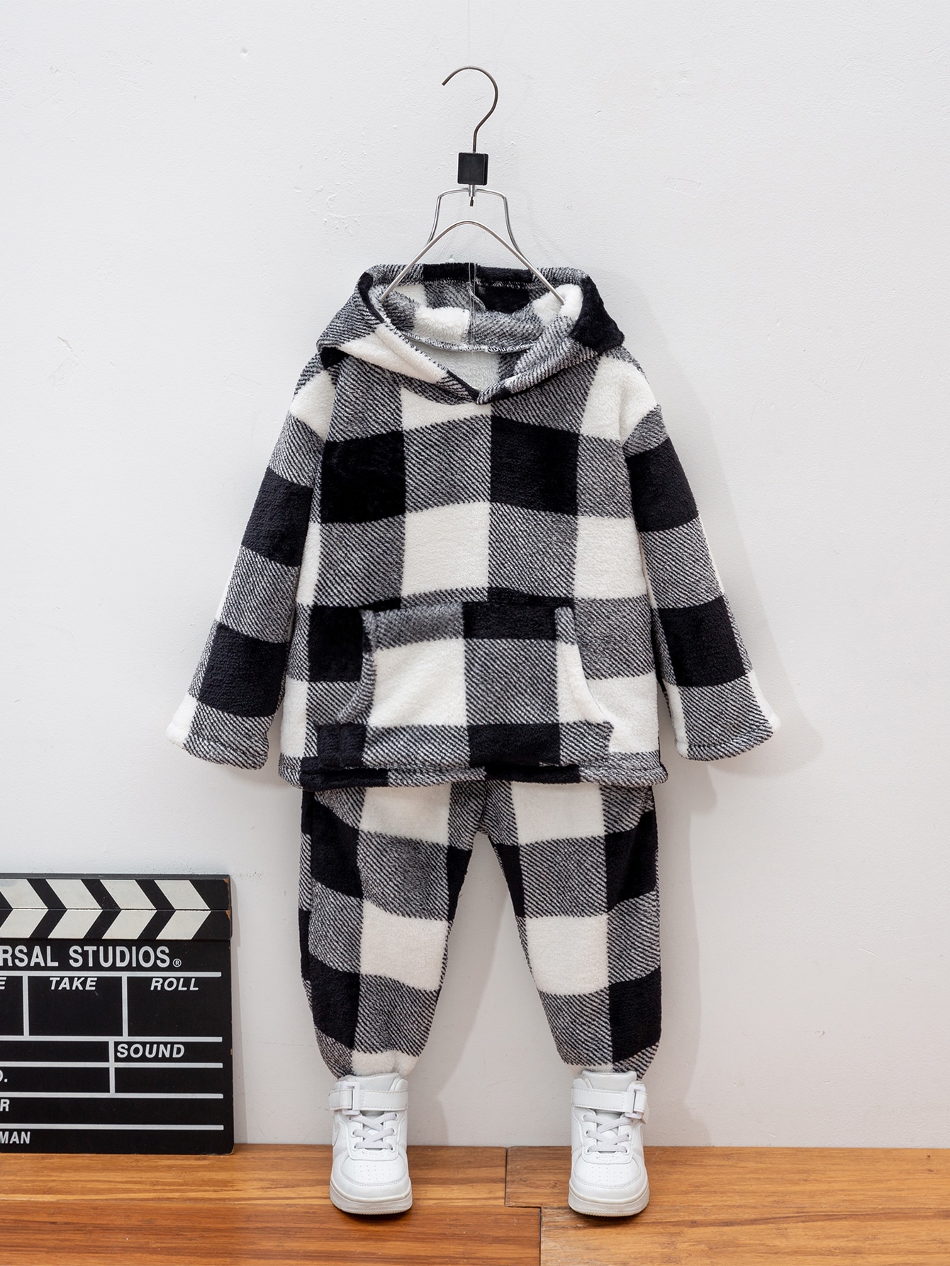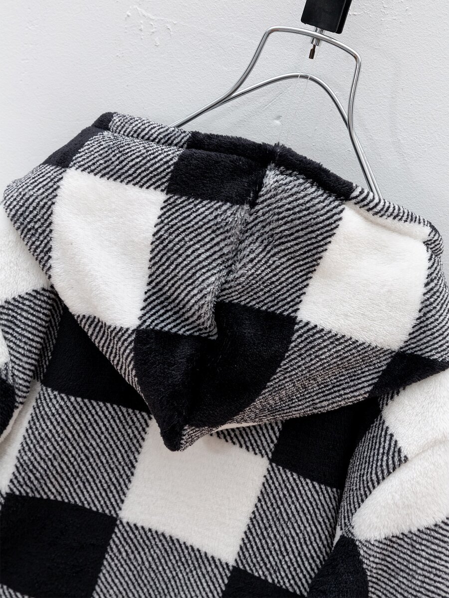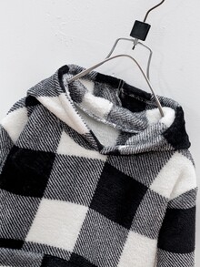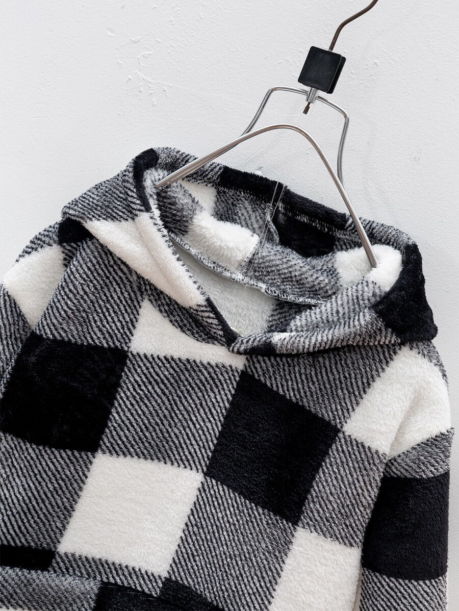 SHEIN Young Boy Buffalo Plaid Pattern Kangaroo Pocket Flannel Hoodie & Pants