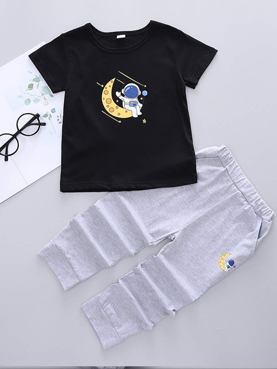 SHEIN Toddler Boys Cartoon Graphic Tee With Sweatpants