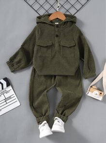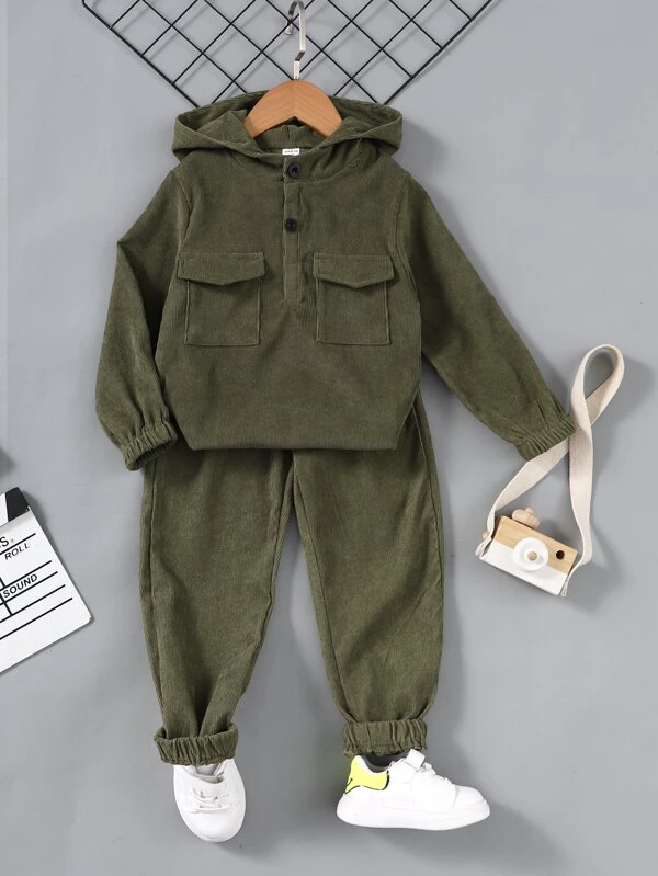 SHEIN Kids EVRYDAY Young Boy Flap Pocket Hoodie & Sweatpants