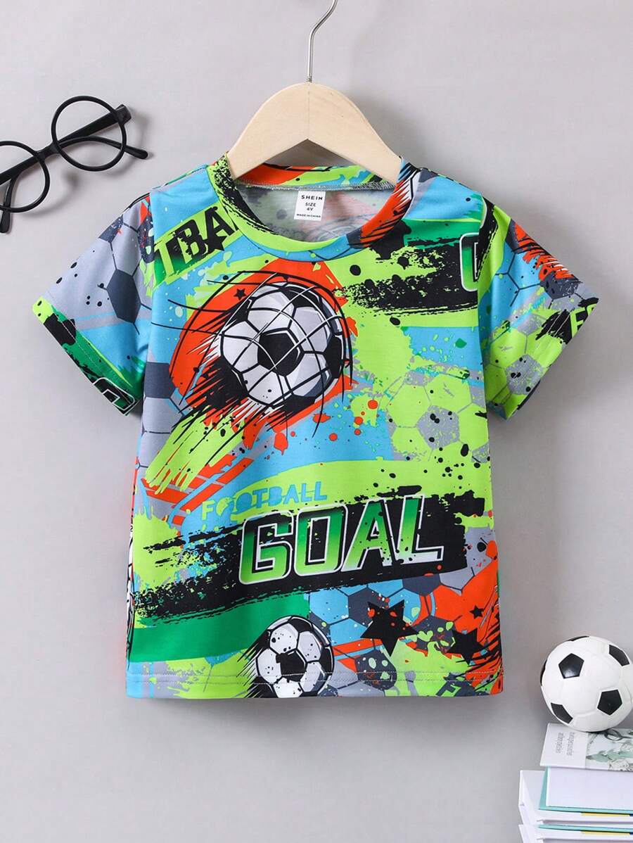 SHEIN Kids SPRTY Young Boy Football & Letter Graphic Tee
