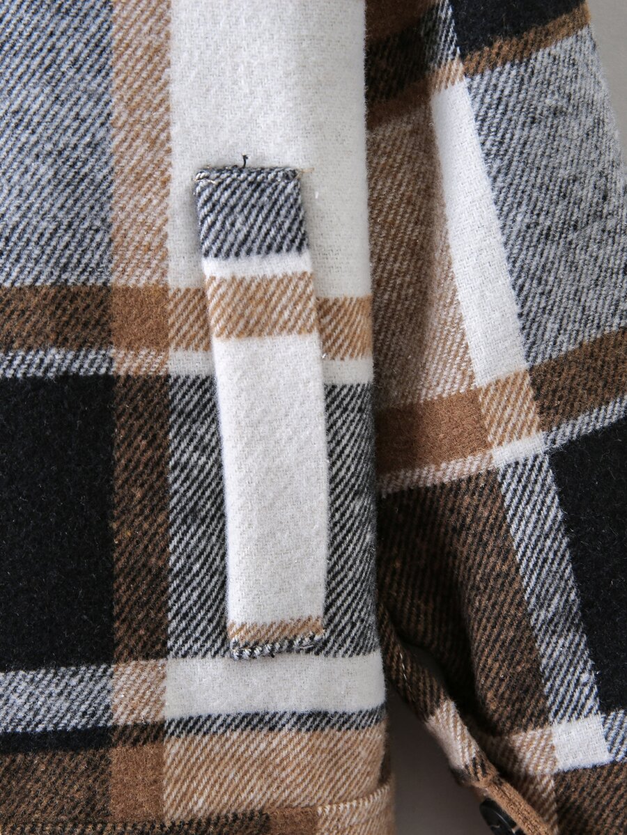 SHEIN Young Boy Plaid Button Through Flap Detail Overcoat Without Hoodie