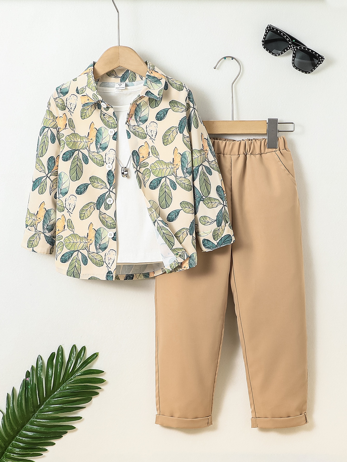 Toddler Boys Plants Print Shirt & Pants Without Tee
