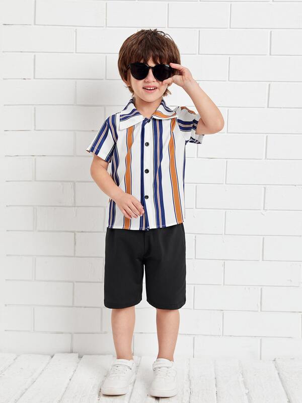 SHEIN Kids SUNSHNE Toddler Boys Striped Shirt With Bermuda Shorts