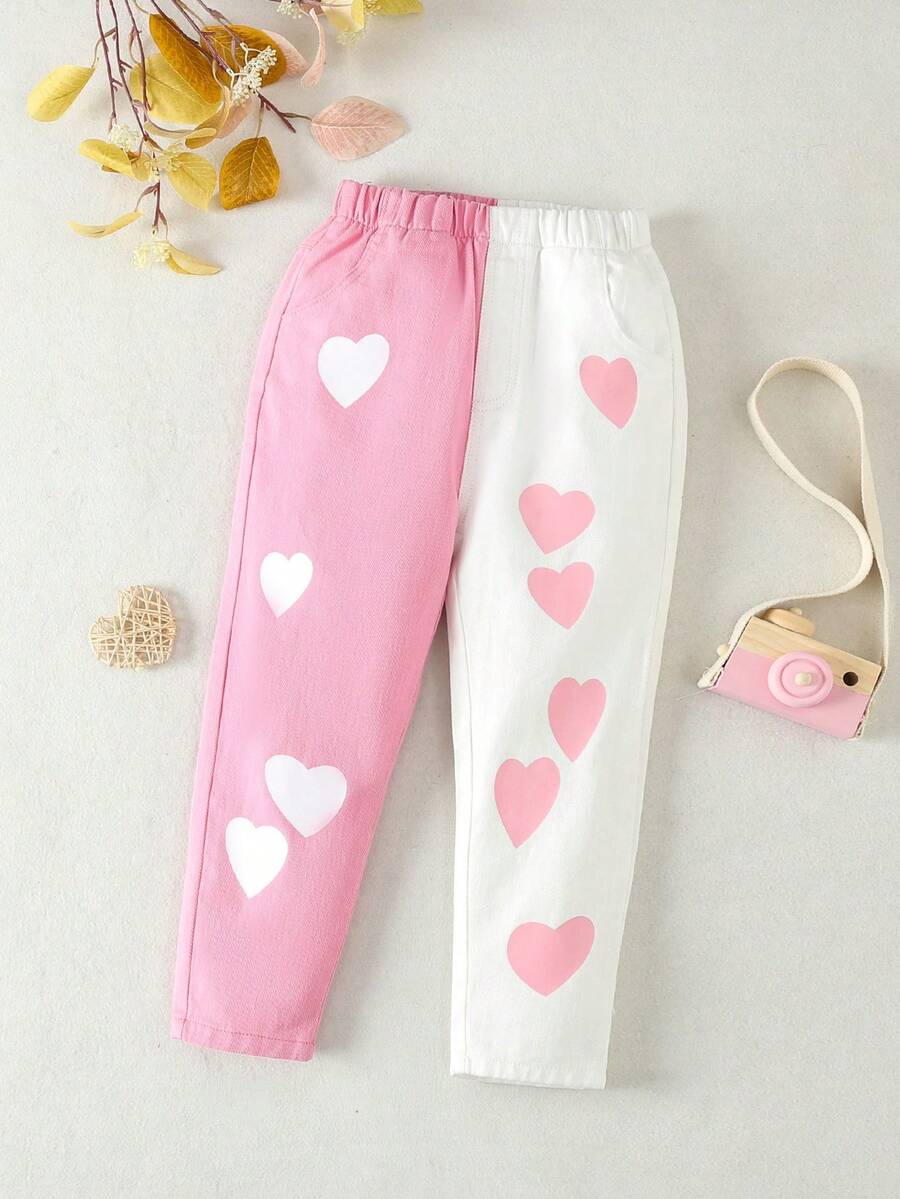 Toddler Girls' Casual & Comfortable Heart Patchwork Jeans With Embossed Pattern