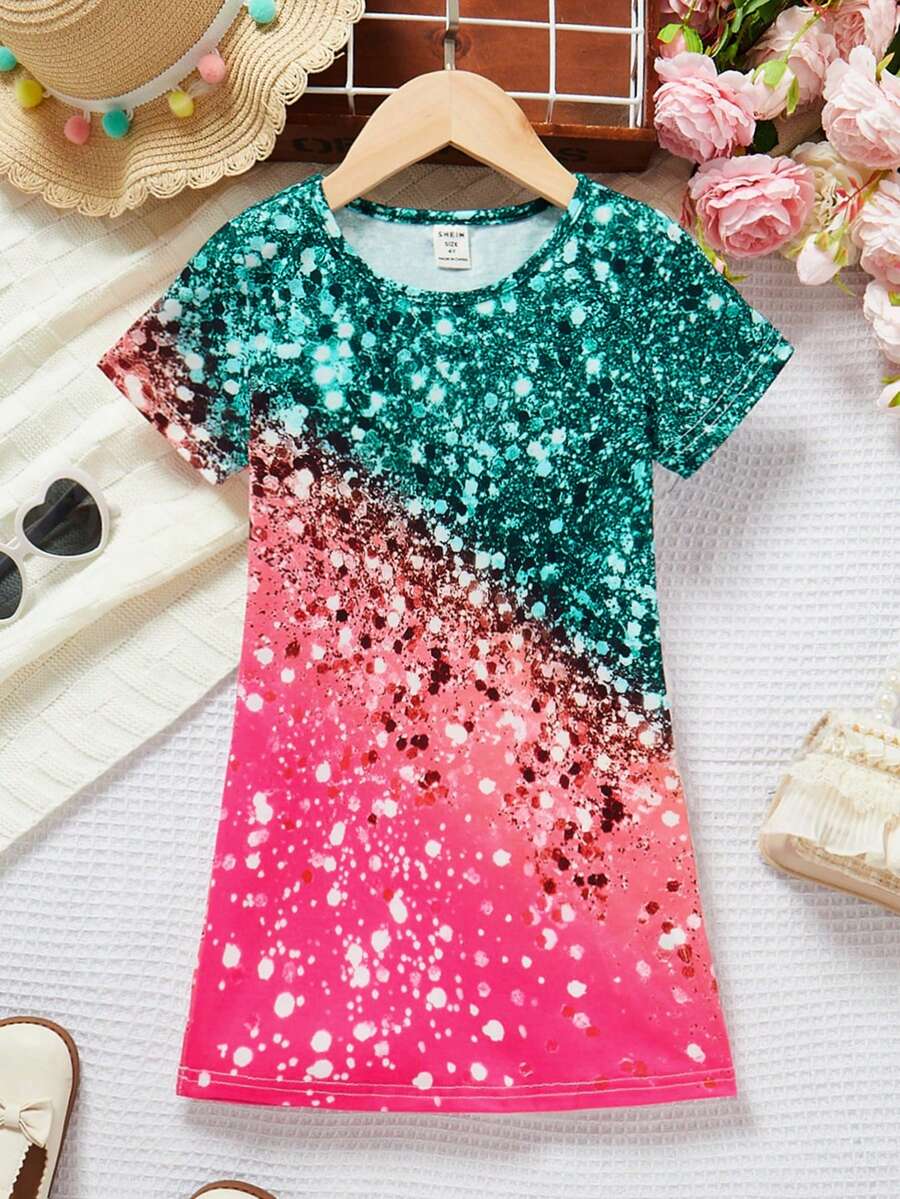 SHEIN Kids QTFun Toddler Girls' Ombre Printed Dress
