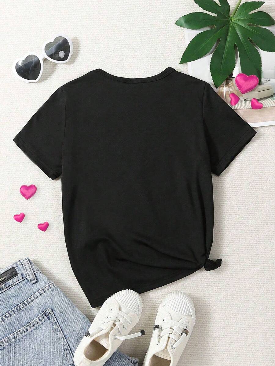 Toddler Girls' Pink Love Heart Pattern Short Sleeve T-shirt With Round Neck