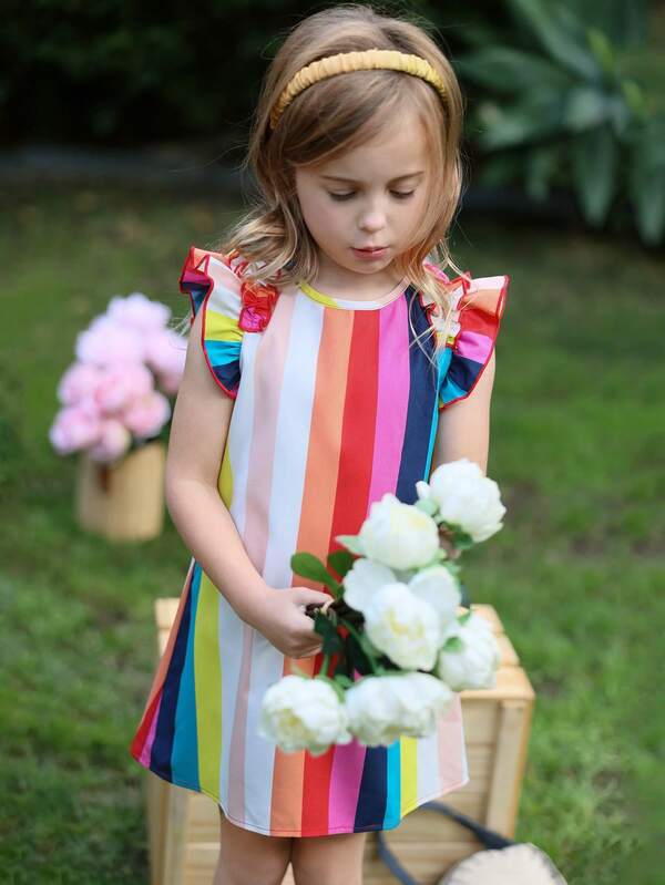 SHEIN Kids SUNSHNE Young Girl Colorblock Striped Ruffle Trim Dress