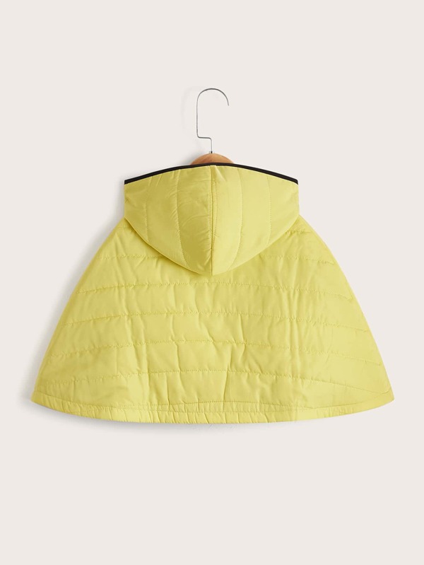 SHEIN Toddler Girls Contrast Binding Zipper Hooded Cape Puffer Coat