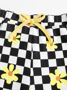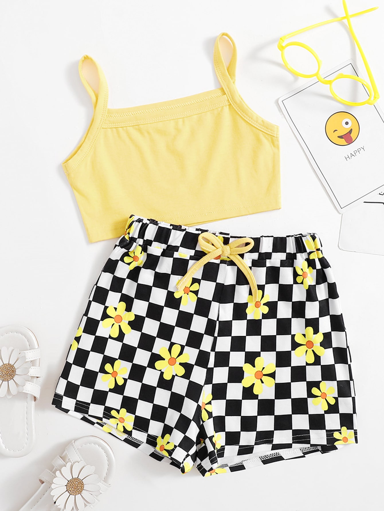 SHEIN Kids HYPEME Young Girl Crop Cami Top & Floral And Checkered Shorts Set