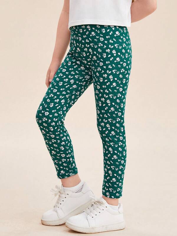 SHEIN Kids EVRYDAY Toddler Girls Ditsy Floral Print Leggings