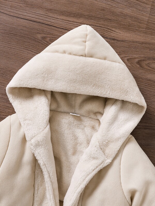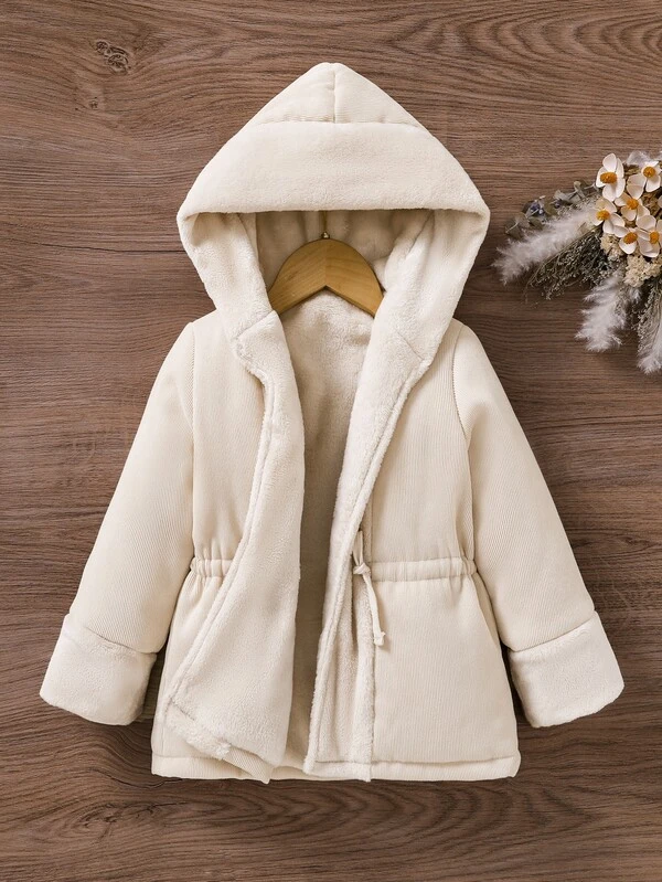 Toddler Girls Drawstring Waist Hooded Teddy Lined Parka Coat