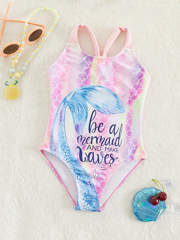 Young Girl Fish Scale Print One Piece Swimsuit