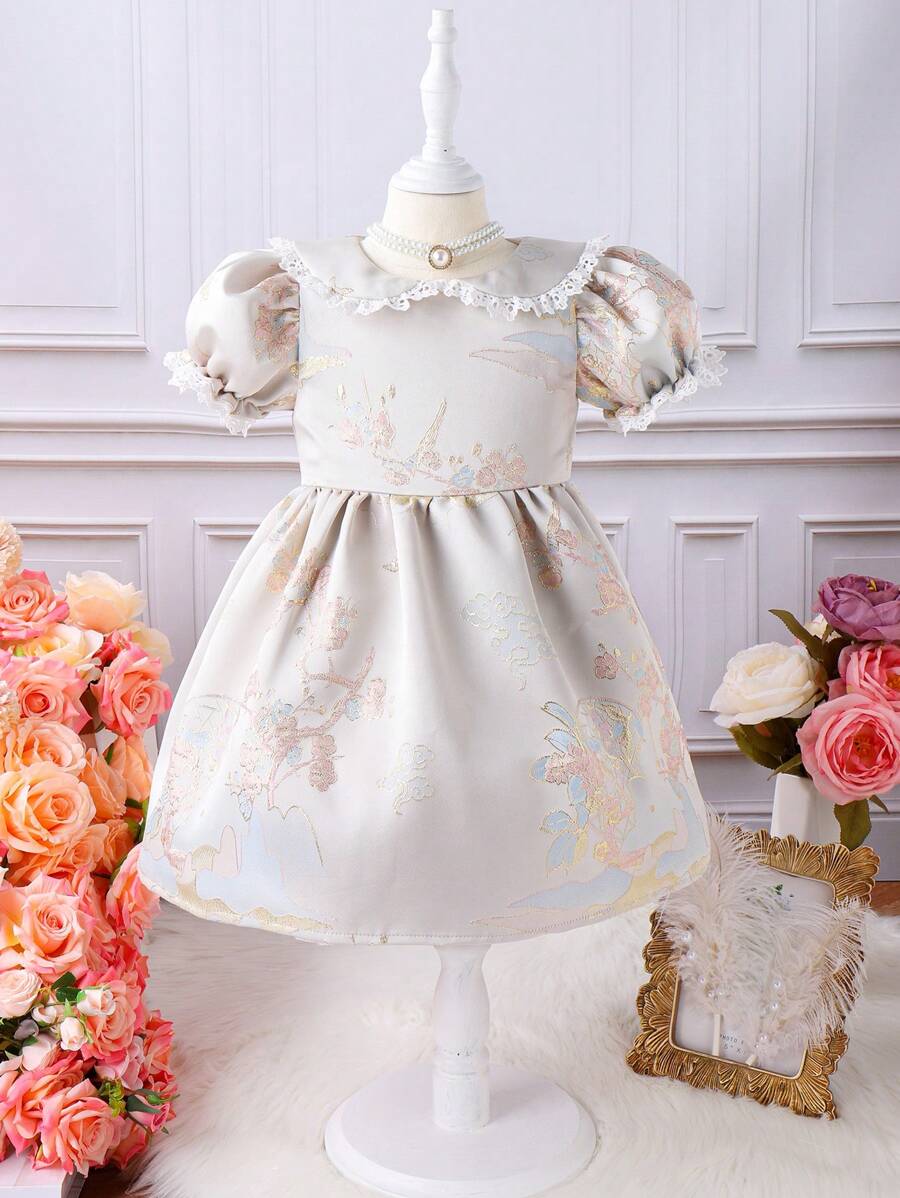 SHEIN Kids CHARMNG Toddler Girls Floral Embroidery Puff Sleeve Dress