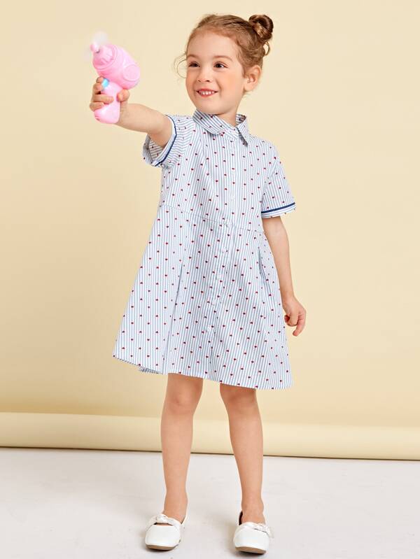 SHEIN Toddler Girls Heart Print Striped Trim Shirt Dress