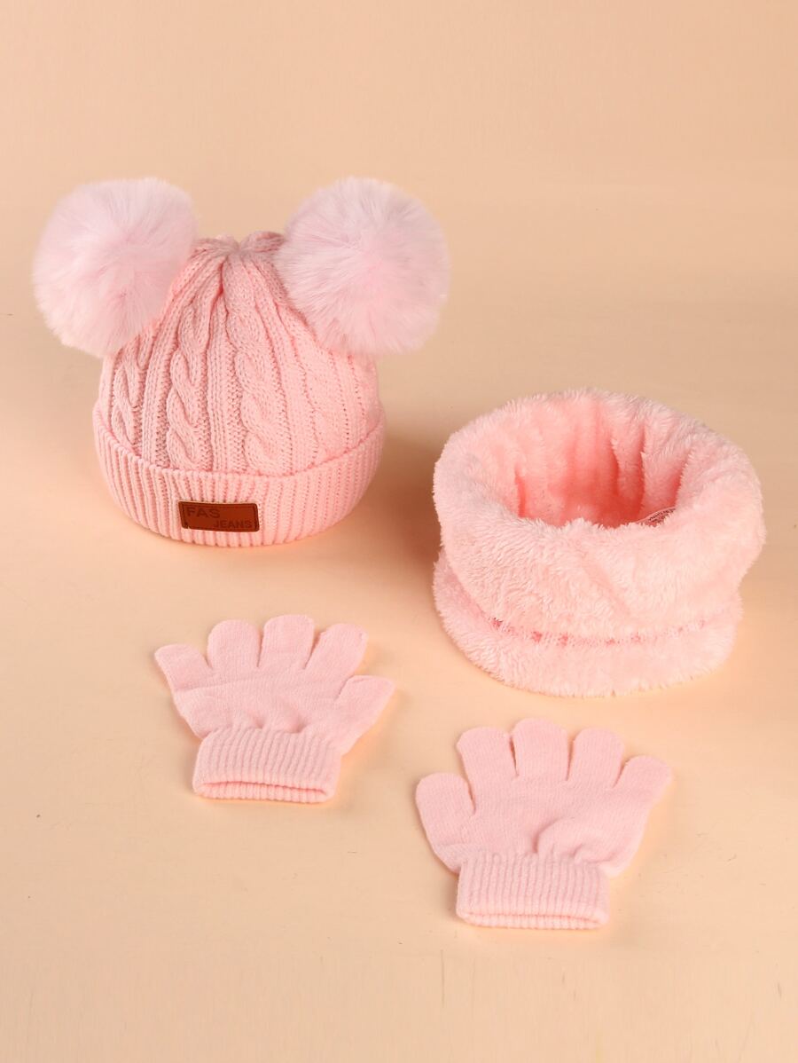 Toddler Girls Knit Beanie & Gloves & Infinity Scarf