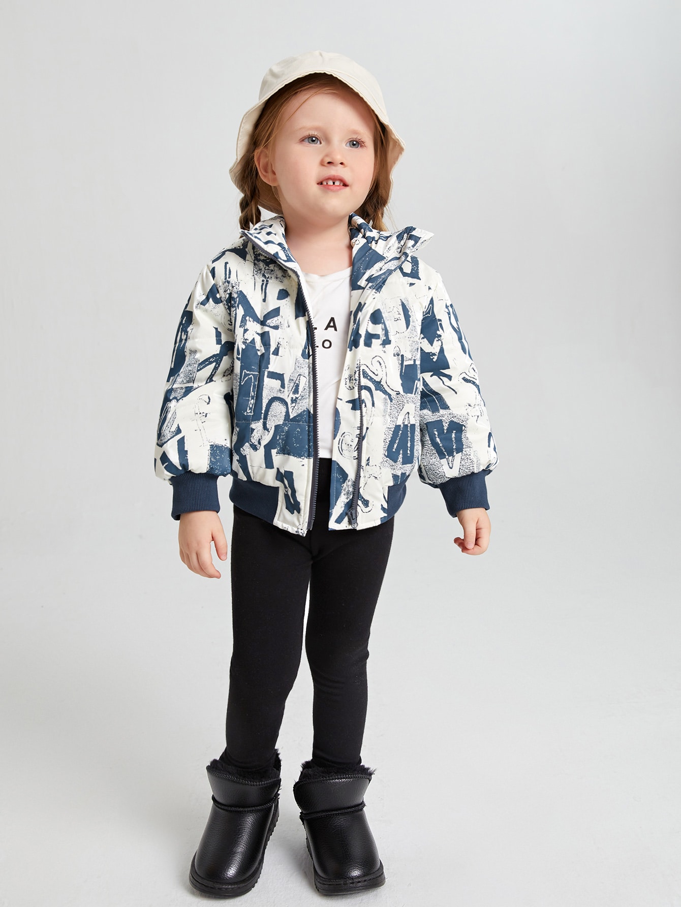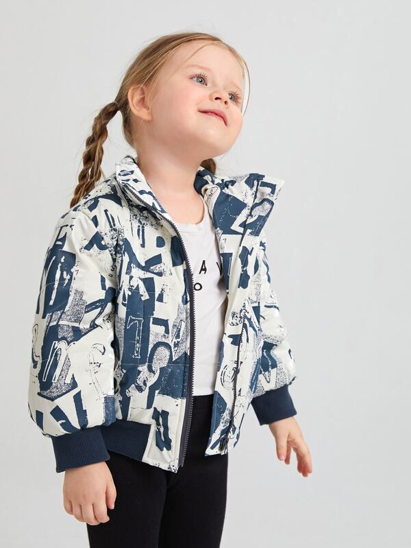 SHEIN Toddler Girls Letter Graphic Zip Up Puffer Coat