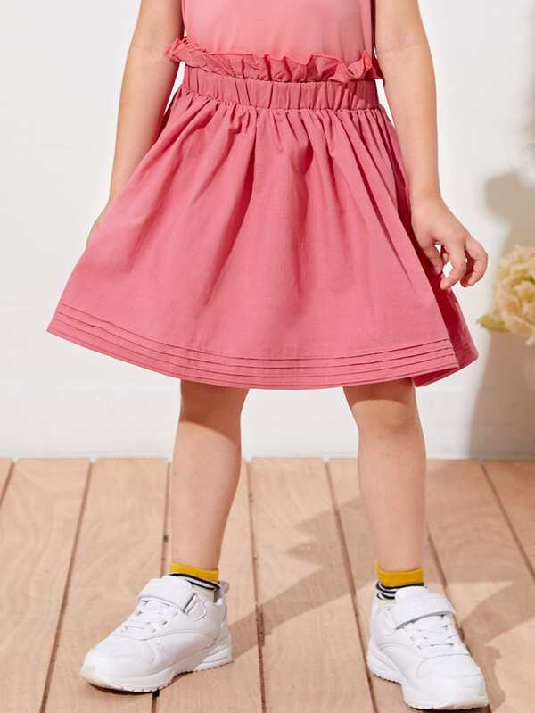 SHEIN Toddler Girls Paperbag Waist Pleated Detail Skirt
