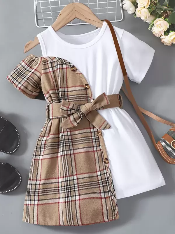 SHEIN Kids EVRYDAY Young Girl Plaid Cut Out Dress