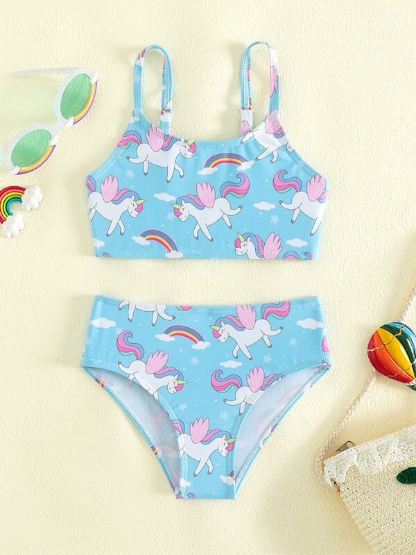 Toddler Girls Random Unicorn & Rainbow Print Bikini Swimsuit