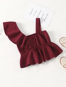 Toddler Girls Ruffle Trim Asymmetric Neck Peplum Blouse