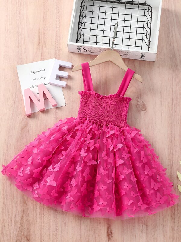 SHEIN Kids SUNSHNE Young Girl Shirred Frill Trim Butterfly Appliques Cami Dress