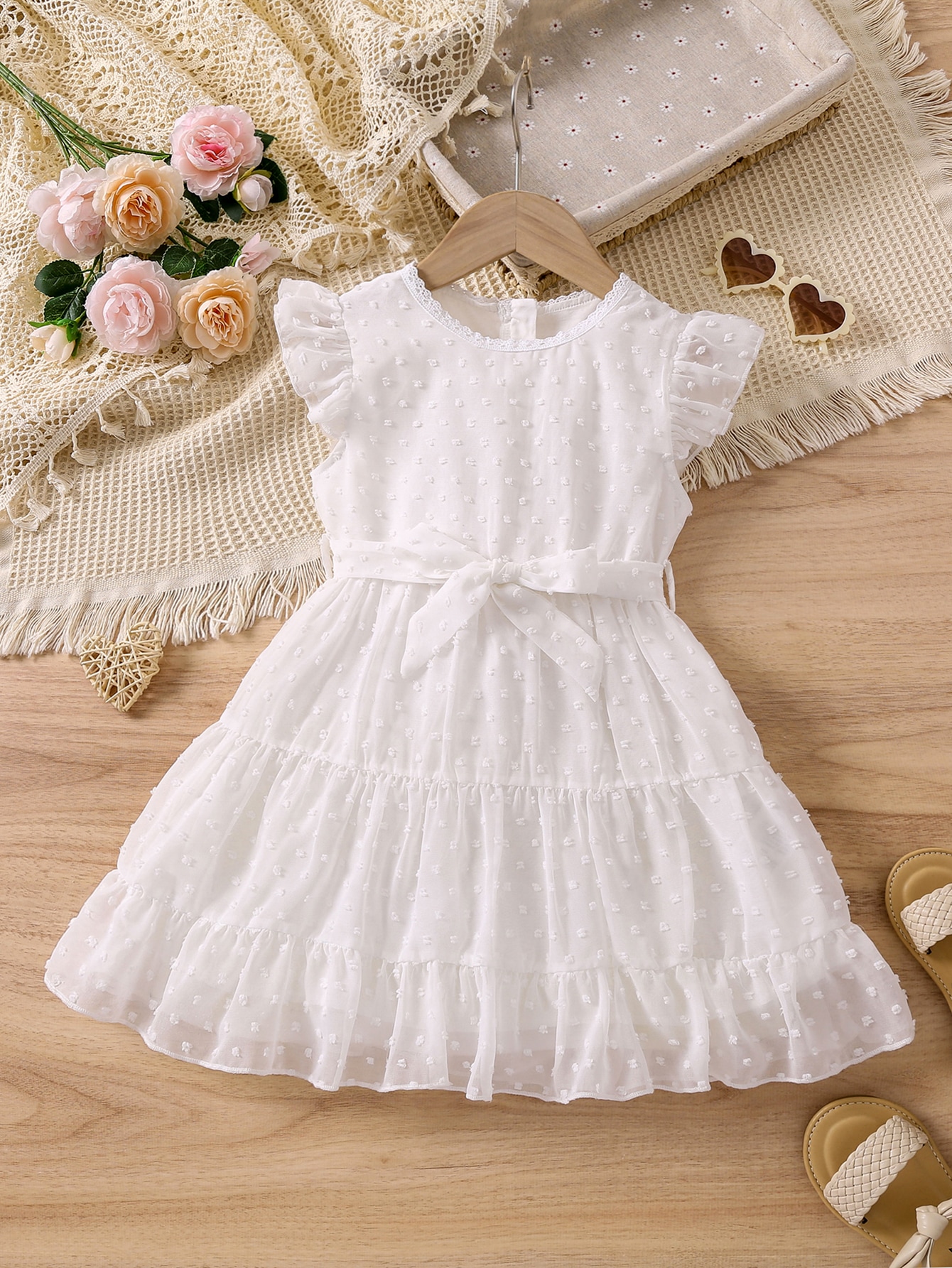 SHEIN Kids EVRYDAY Toddler Girls Swiss Dot Ruffle Hem Belted Dress