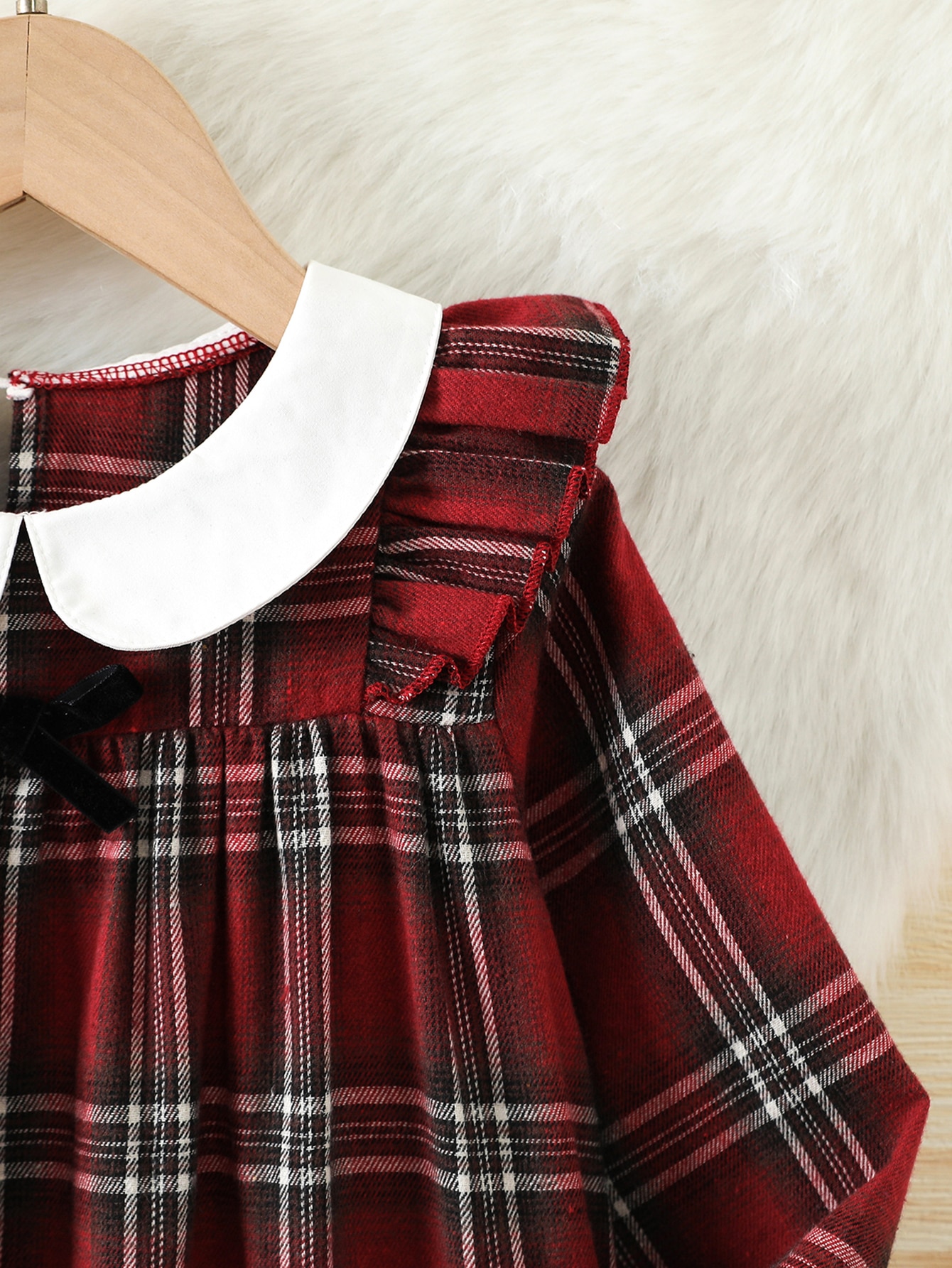 SHEIN Kids SUNSHNE Young Girl Tartan Print Peter-Pan Collar Ruffle Trim Dress