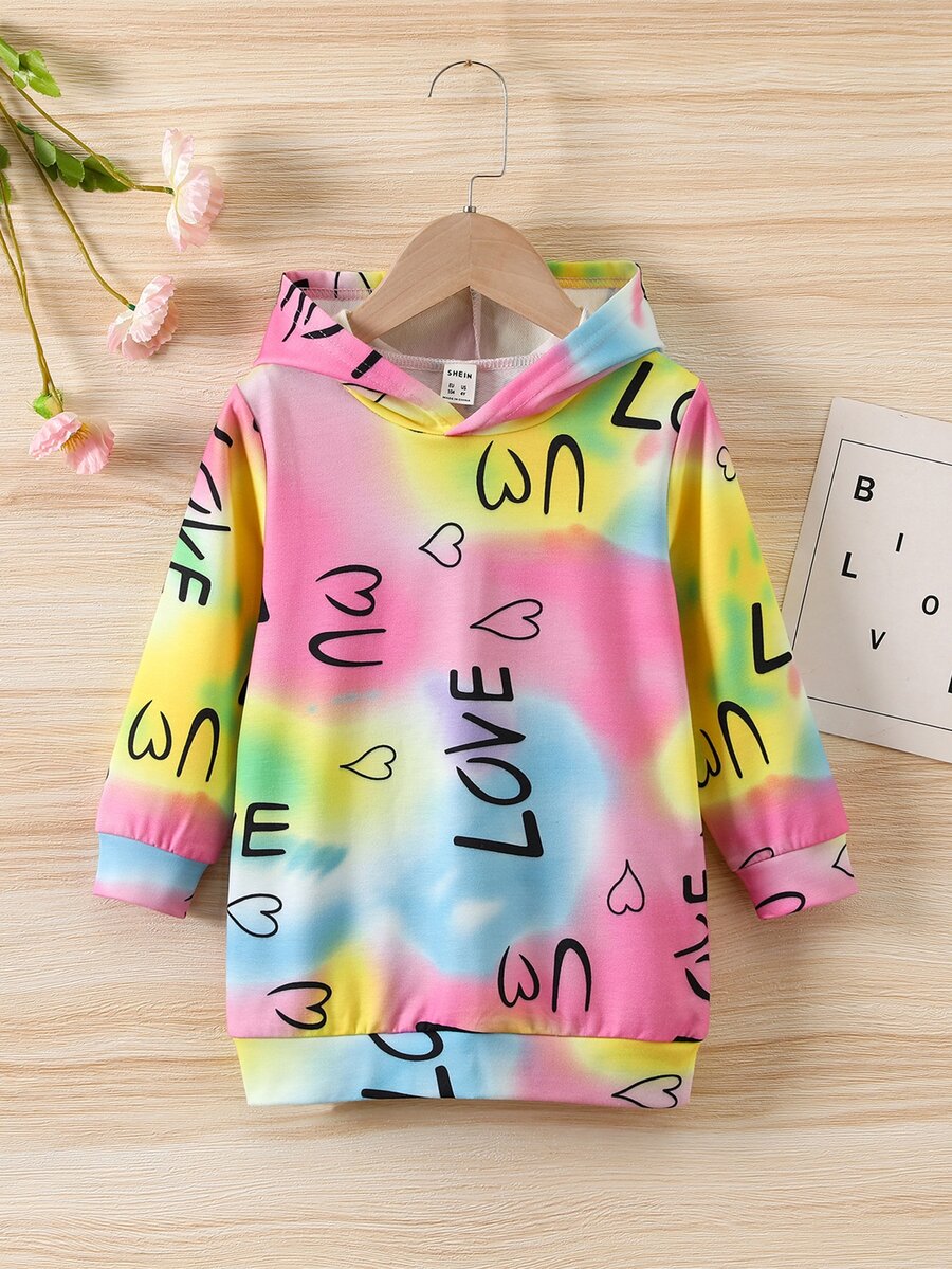 Toddler Girls Tie Dye Letter Graphic Hoodie