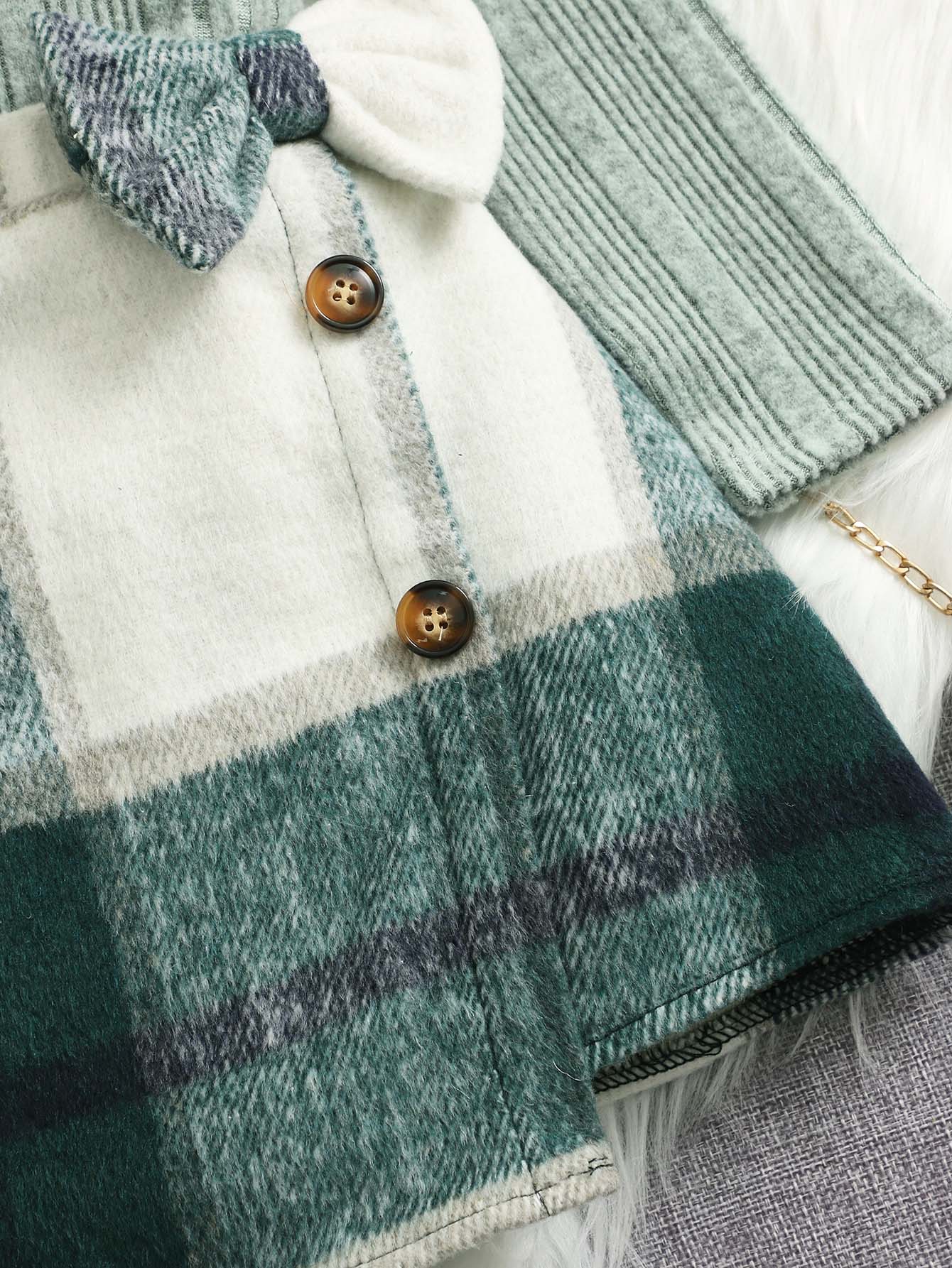 SHEIN Kids FANZEY Toddler Girls Turtleneck Tee & Plaid Print Skirt